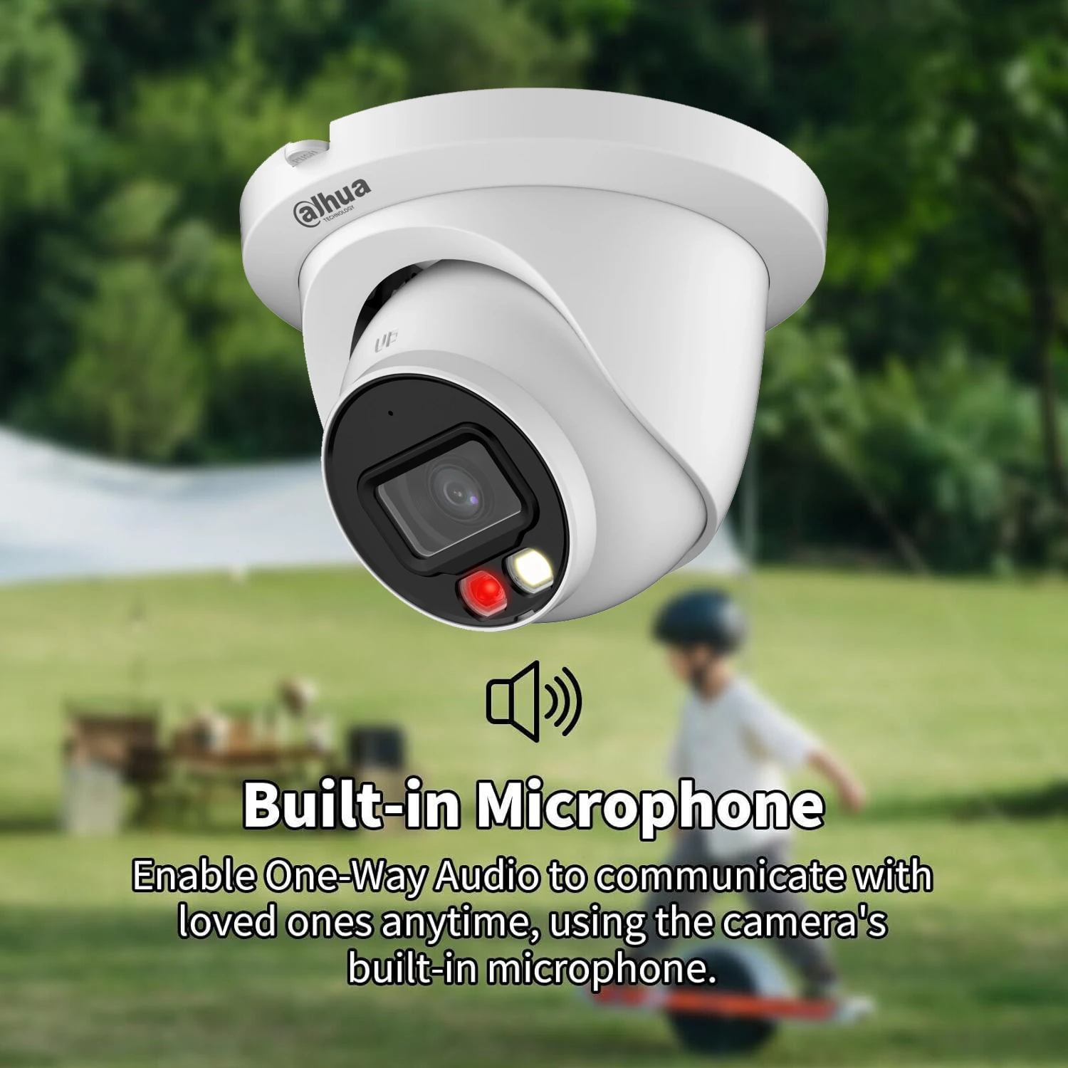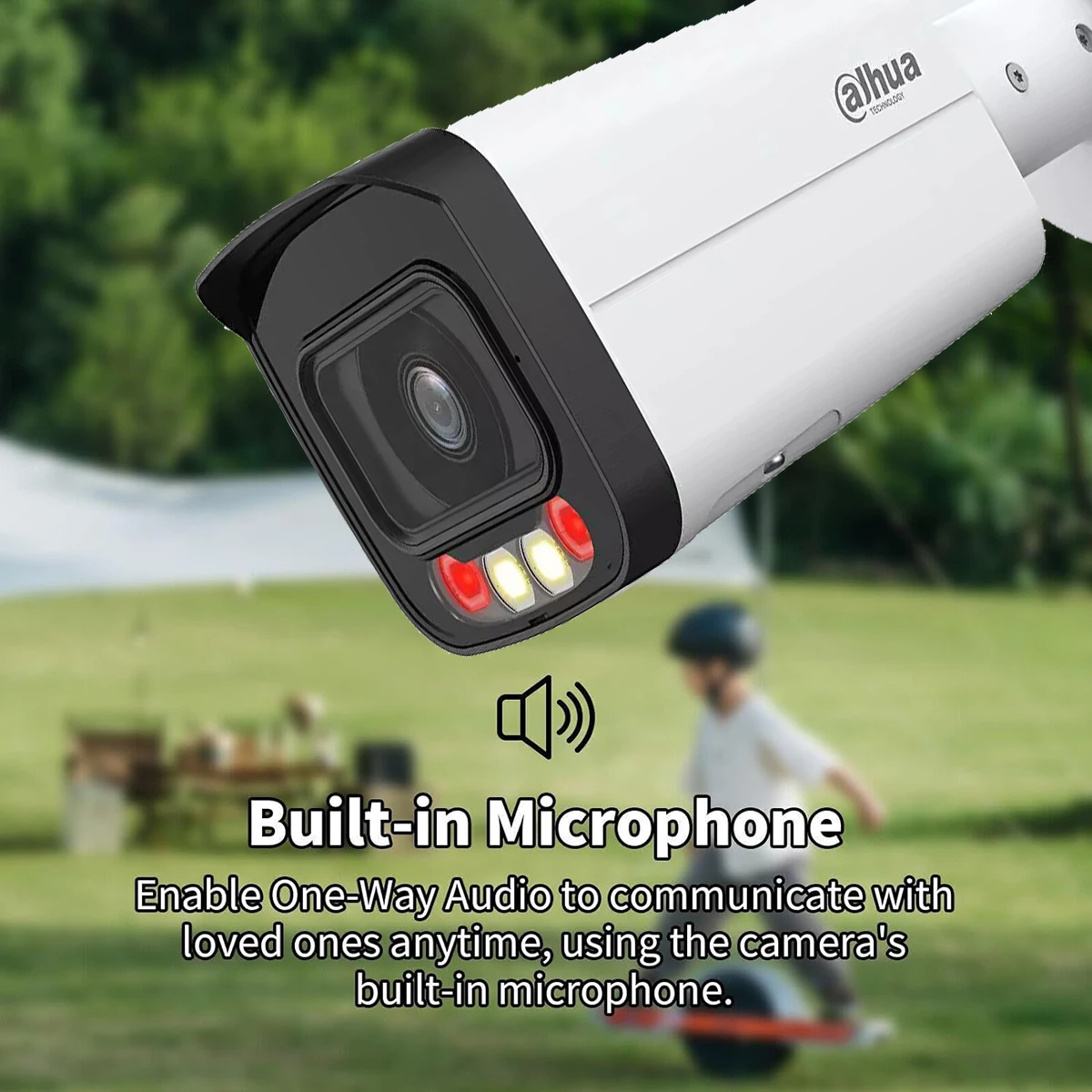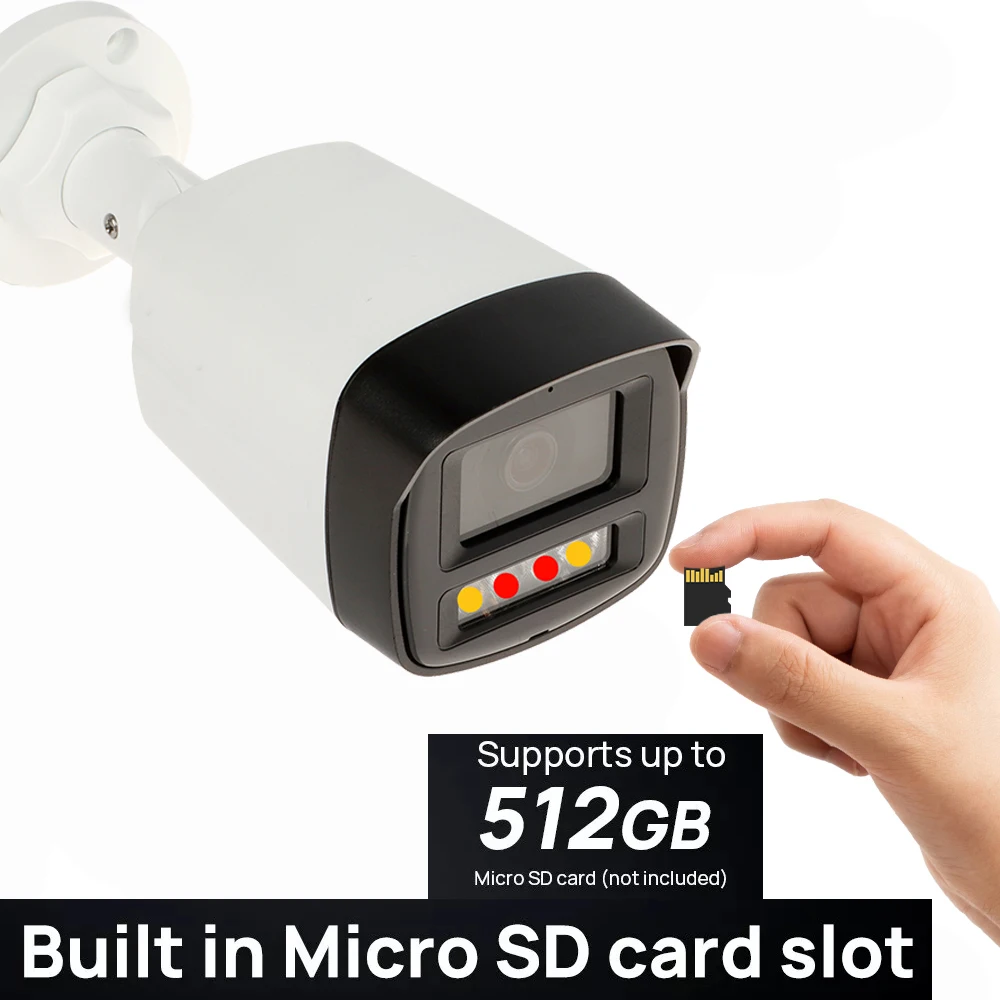> Supports max. 256 G Micro SD card; built-in Mic; built-in speaker; support two-way talk.