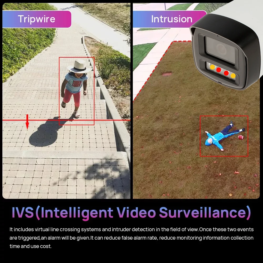 Dahua IVS technology supports intelligent functions, such as tripwire and intrusion)