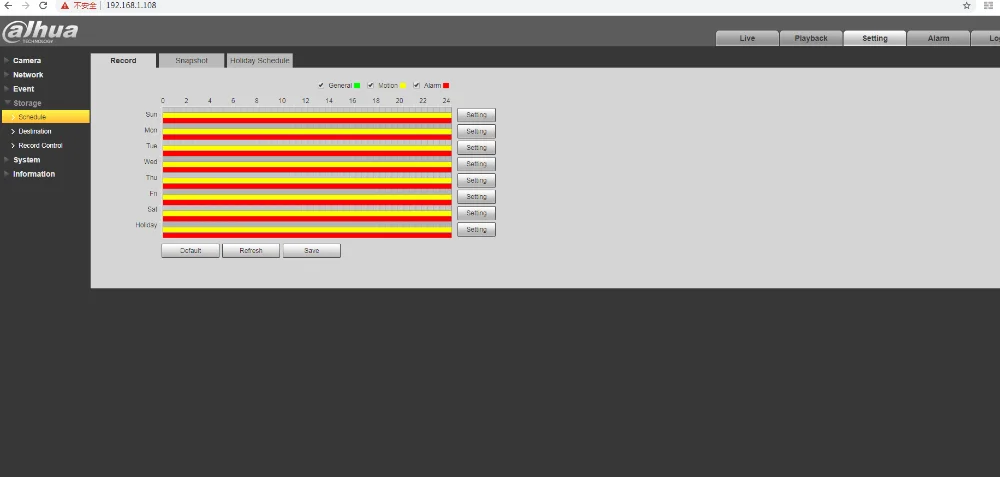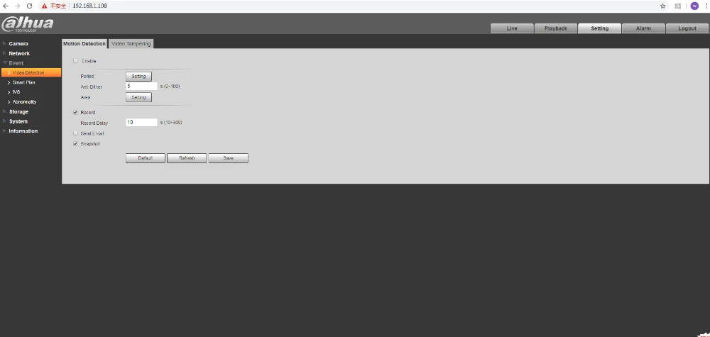 > Abnormality detection: Motion detection, video tampering, no SD card, SD card full, SD card error, network disconnected, IP conflict, illegal ac- cess, voltage detection
